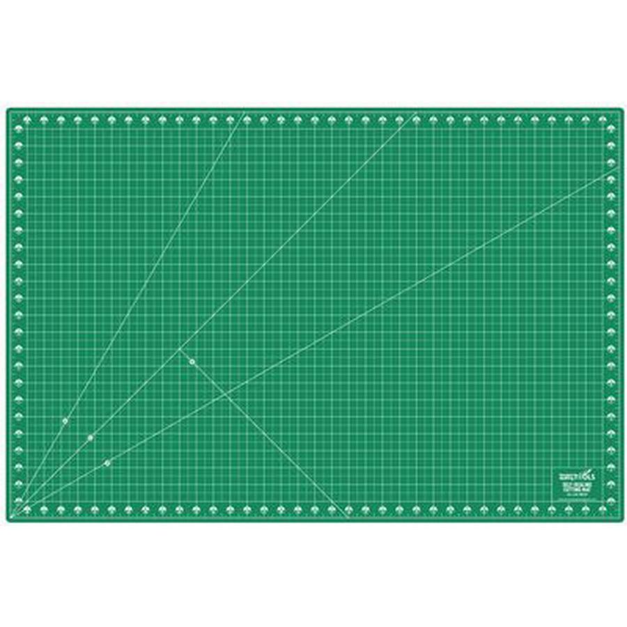 24in x 36in Self-Healing Cutting Mat with Durable self-healing 5-layer construction. Reversible design with a dark background on one side and a light background on the other. Easy-to-use layout with two sets of corresponding numbers for reading left to right or right to left. No more counting backwards! Accurate 1in grid with 1/8in marks for precise alignment as well as 30, 45, 60, and 90 degree guide lines to help the cutting process.