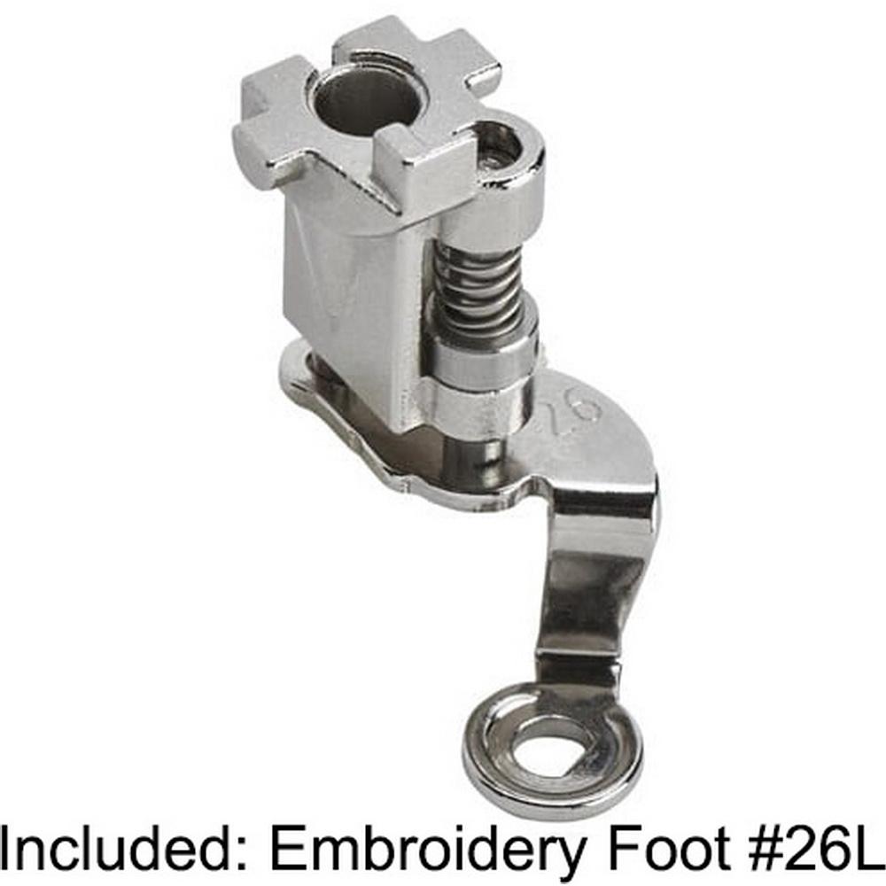 - Jumbo bobbin for longer stitch-outs with fewer interruptions