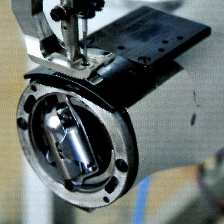 A 37 inch long arm cylinder bed compound feed lockstitch machine for extra heavy duty work. The Japanese made large shuttle hook and large bobbin capacity offer high efficiency and ease of operation. The bobbin winder is on the top of the head for easy access and the presser foot lift is adjustable up to 20 mm (.8 inches). A specially designed pedestal stand makes sewing and material handling less burdensome. It can be used in the manufacture of such products as golf bags, filters, safety bags, cases, gymnastic mats and similar bulky heavy duty articles.