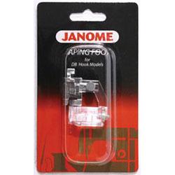 The Taping Foot helps to feed seam tape binding when sewing garments in knit or stretch fabric. Use it on shoulder seams and armholes to prevent stretching. The foot can also be used to attach bias tape. The measuring hatch marks help make an accurate binding width, from 5mm to 20mm.