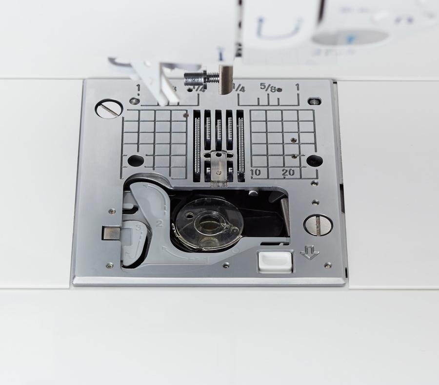 Simply slide the front lever to switch to a single needle hole! Sew the lightest fabrics with perfect needle permeation. The single needle plate will not allow fabrics to be pushed into the needle hole. Free motion stitch with precision and perfection. Sew with confidence, when the single needle hole plate is set, only the straight stitch patterns can be selected.