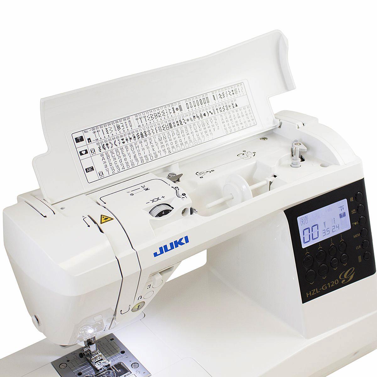 Achieve perfection stitch by stitch with the JUKI HZL-G120! The JUKI HZL-G120 is a full sized computer-controlled sewing machine with a bright LCD screen. Take on big projects with the wide underarm space and create beautiful seams with the box feeding system.