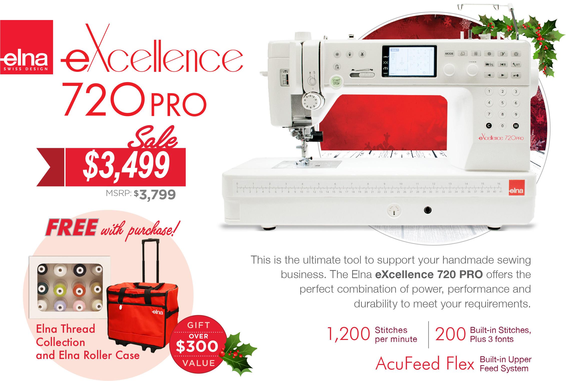 Elna eXcellence 720 Pro Computerized Sewing Machine FREE BONUS PACKAGE VALUED AT $300.00!