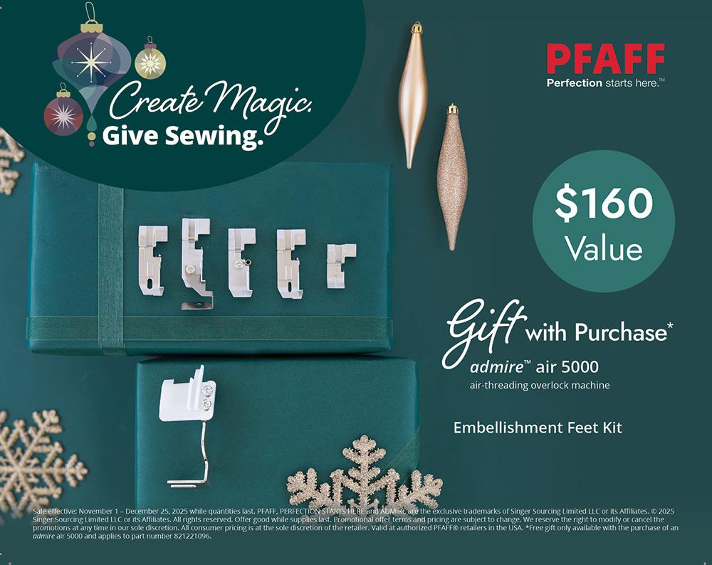 Pfaff Admire Air 5000 Jet Air 4-Thread Overlock Serger SPECIAL HOLIDAY PRICING + FREE HOLIDAY BONUS PACKAGE VALUED AT $160.00 - EXPIRES 12/25/2025!