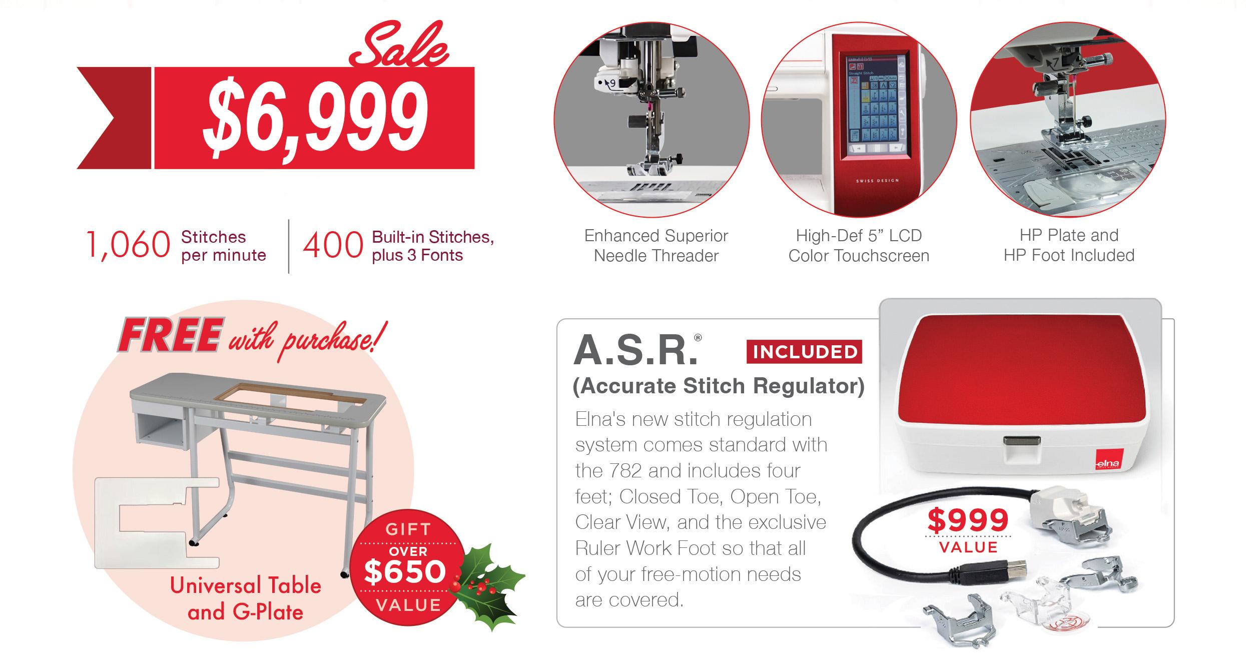 Elna eXcellence 782 Sewing and Quilting Machine FREE BONUS PACKAGE VALUED AT $650.00!