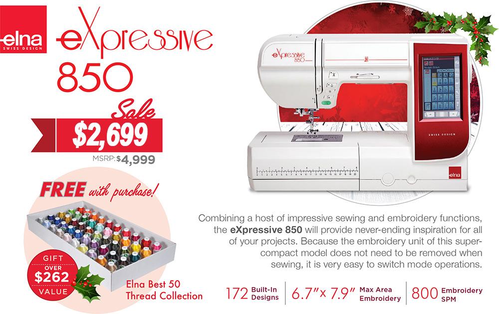 Elna eXpressive 850 Sewing and Embroidery Machine FREE BONUS PACKAGE VALUED AT $262.00!