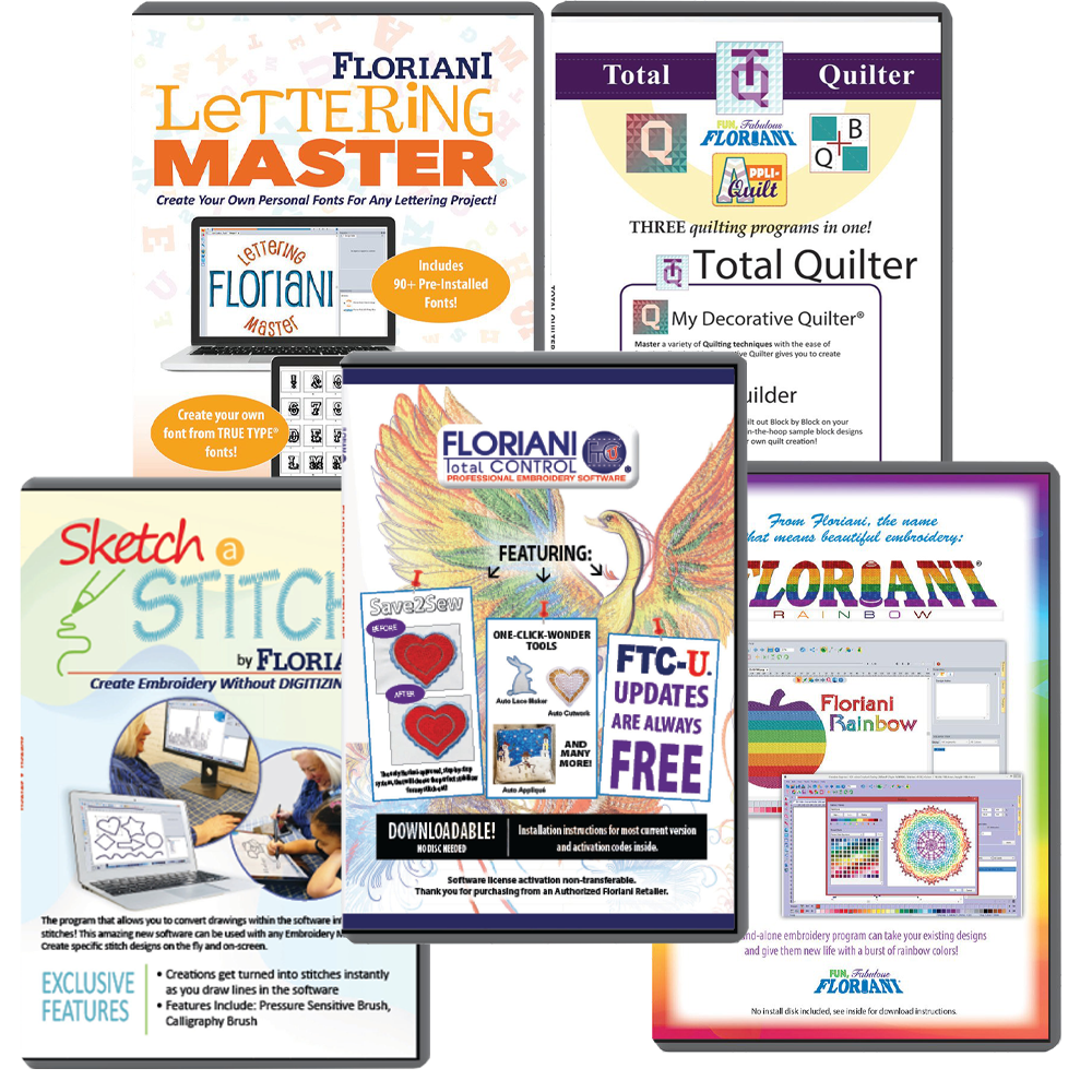 The Fusion software offers a limited feature package from the full Floriani Total Control U, but fully functional with saving, importing, and exporting capabilities for all its tools. And its modular architecture will incorporate any other Floriani software or add-on’s you choose to purchase in the future! Specially made to be more cost effective for crafters new to software, this is YOUR gateway to the BEST in Floriani Software.