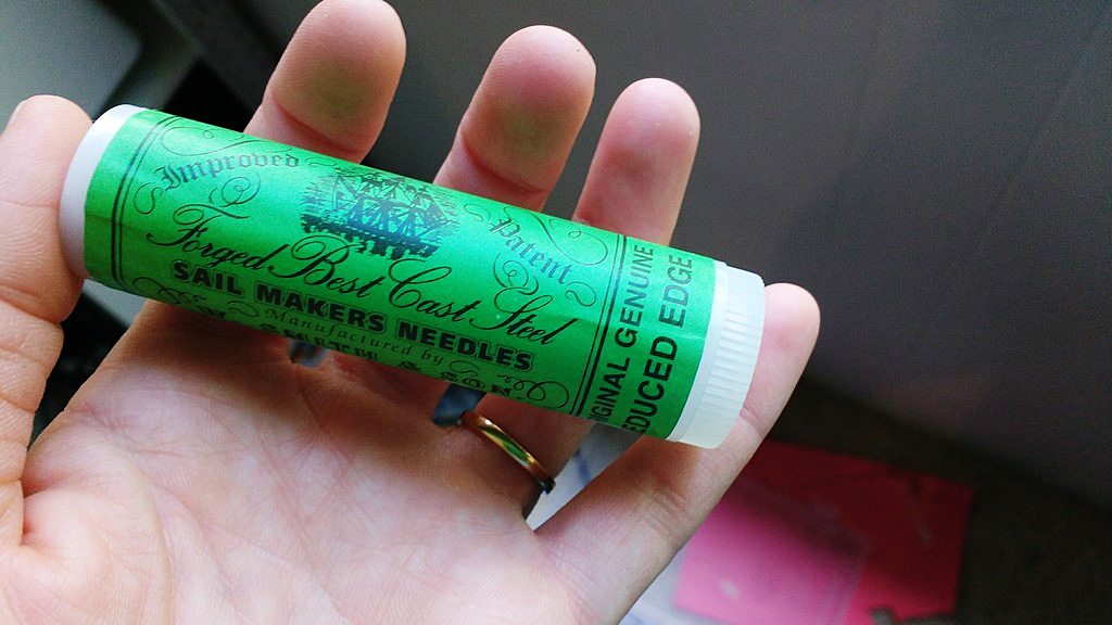 For this, I used my handheld sailmaker needles to pierce a hole in the tape but not through to the front of the fabric.