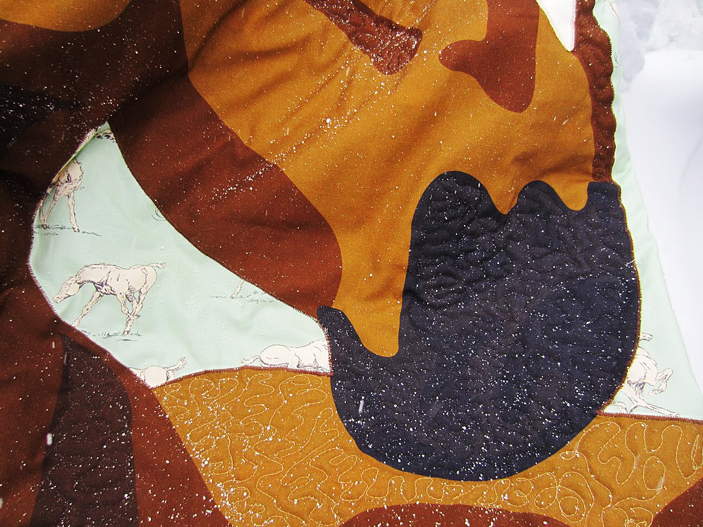 Buying a lot of shades of one color can greatly help when working on projects with a ton of variation in the same tone, like in this quilt I recently finished. I used five different shades of brown and black to finish the horse.