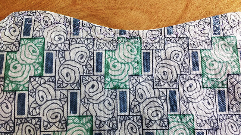 Here’s how mine looked after sewing all the way around. I trimmed away the excess fabric and made small snips around the inner and outer curves so they would lie flat once I turned the fabric right sides out.